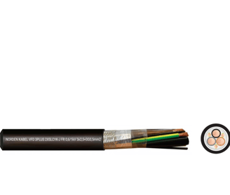 Cables con una construcción especial, utilizados para alimentar motores desde convertidores de frecuencia mientras se mantiene la compatibilidad electromagnética (EMC) total. El aislamiento de polietileno garantiza una baja capacitancia en comparación con los cables aislados de PVC. Los cables son aptos para instalaciones fijas y conexiones flexibles en equipos industriales, líneas de proceso y máquinas que operan en cuartos secos y húmedos. La cubierta negra resistente a los rayos UV permite la instalación en el exterior de los edificios. El cable también es apto para enterramiento directo. La construcción simétrica del cable (3+3PE) garantiza la simetría de las tensiones en las terminales del motor. Cables clasificados según EN 50575 (CPR). NOM-063.